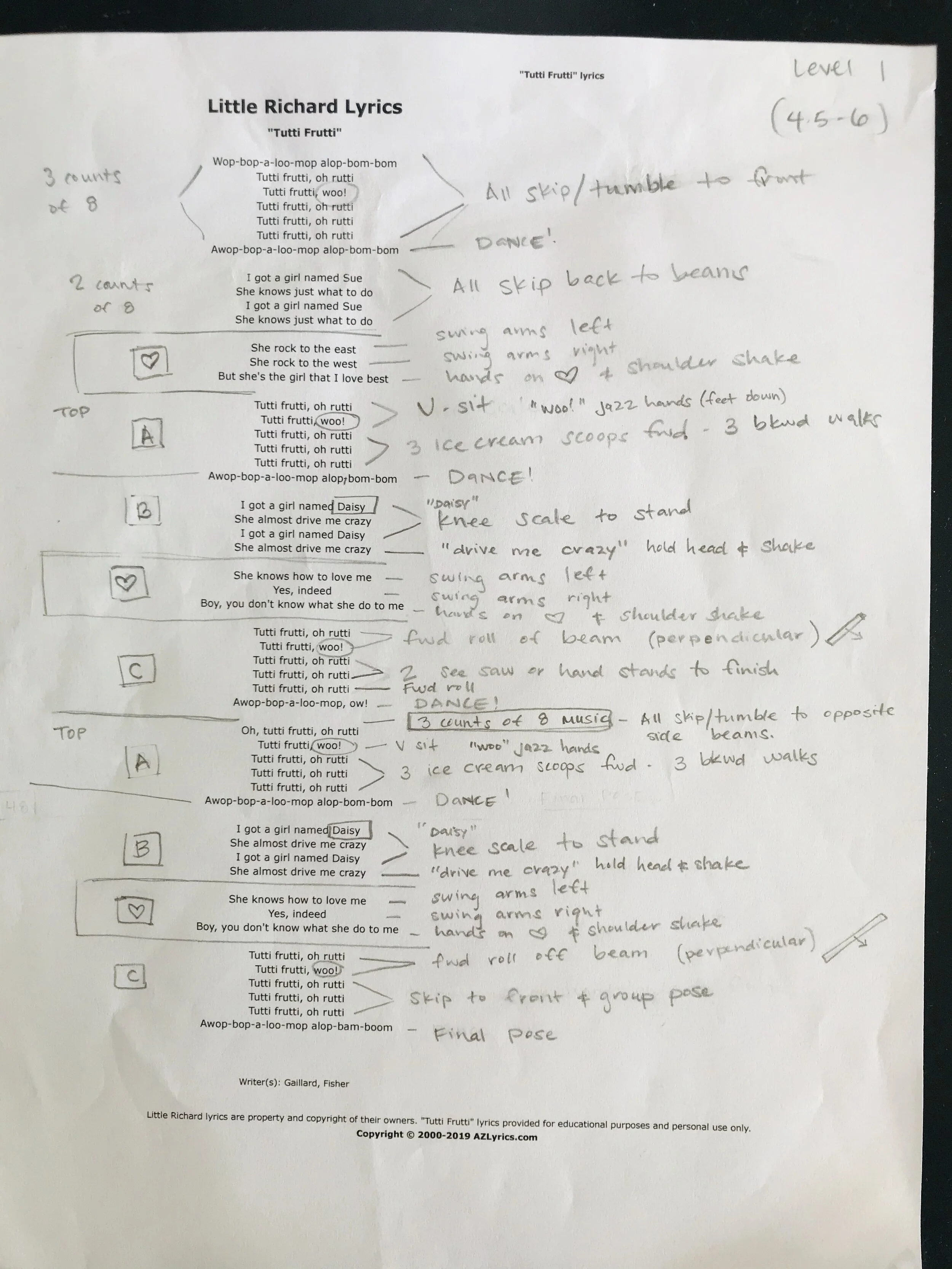 Level 1 4.5 to 6 | Little Richard “Tutti-Fruitti” | https://m.youtube.com/watch?v=lWK3o96gt90