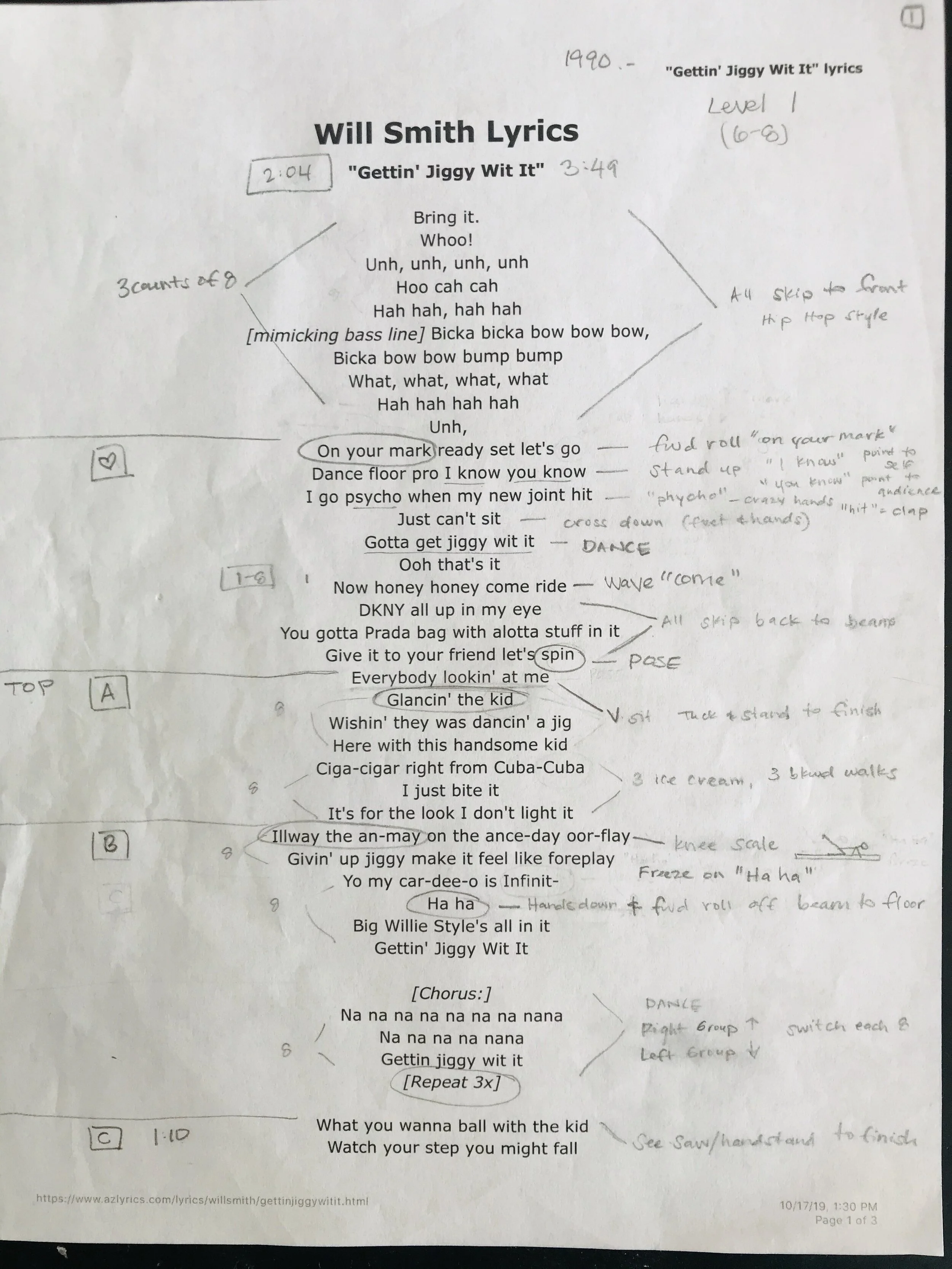 Level 1 - 6-8 yrs | Will Smith “Gettin Jiggy Wit It” | https://m.youtube.com/watch?v=X49MAk7USzo